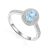An oval shaped aqua stone weighing 0.70cts in a halo of round diamonds and along the shoulders with a total weight of 0.36cts set in 18ct white gold